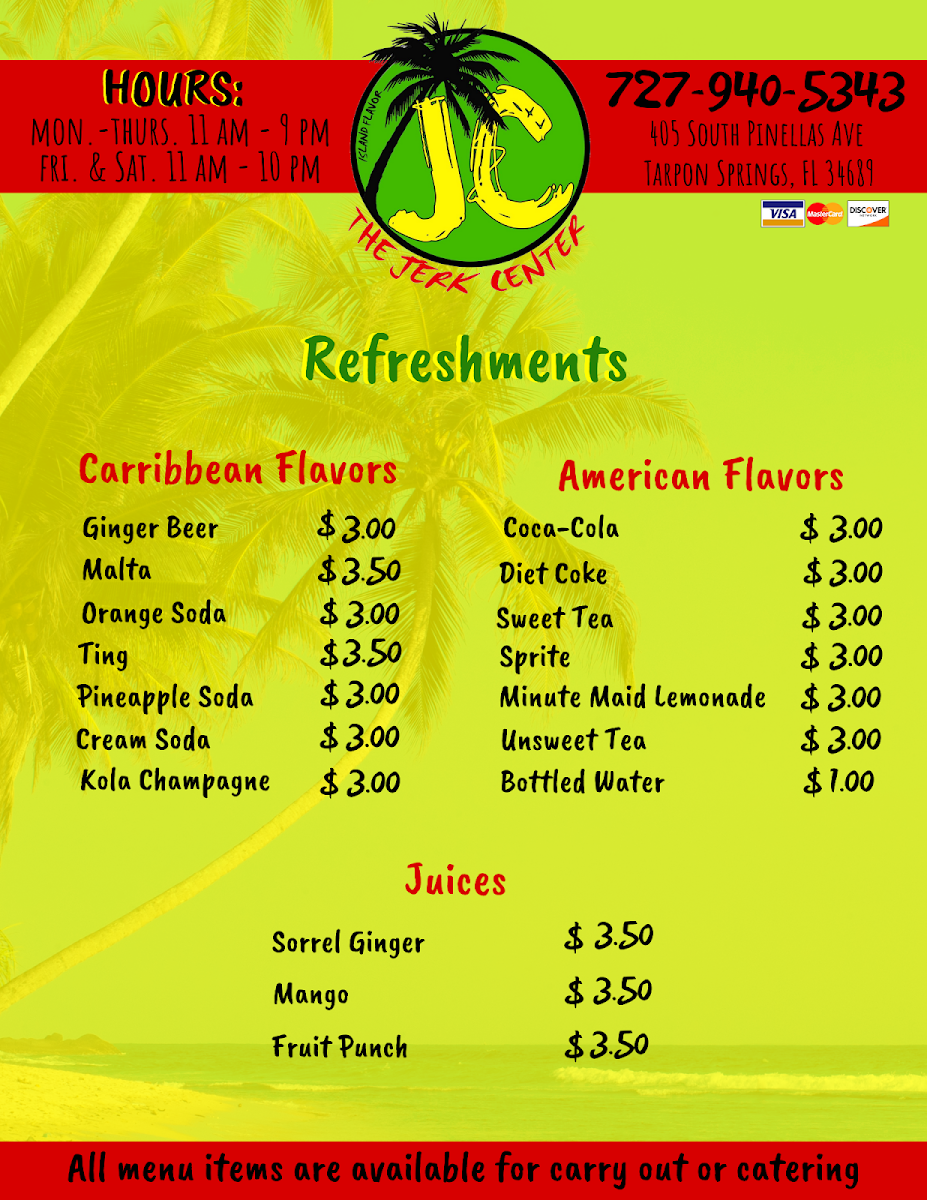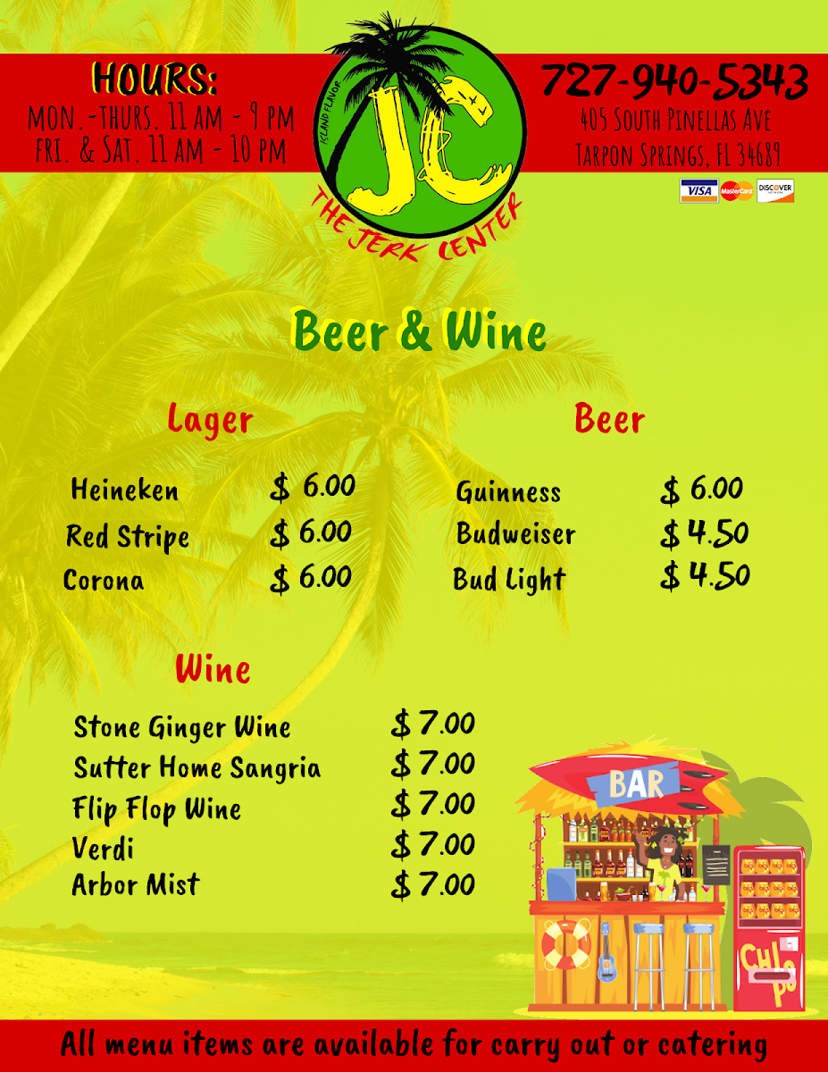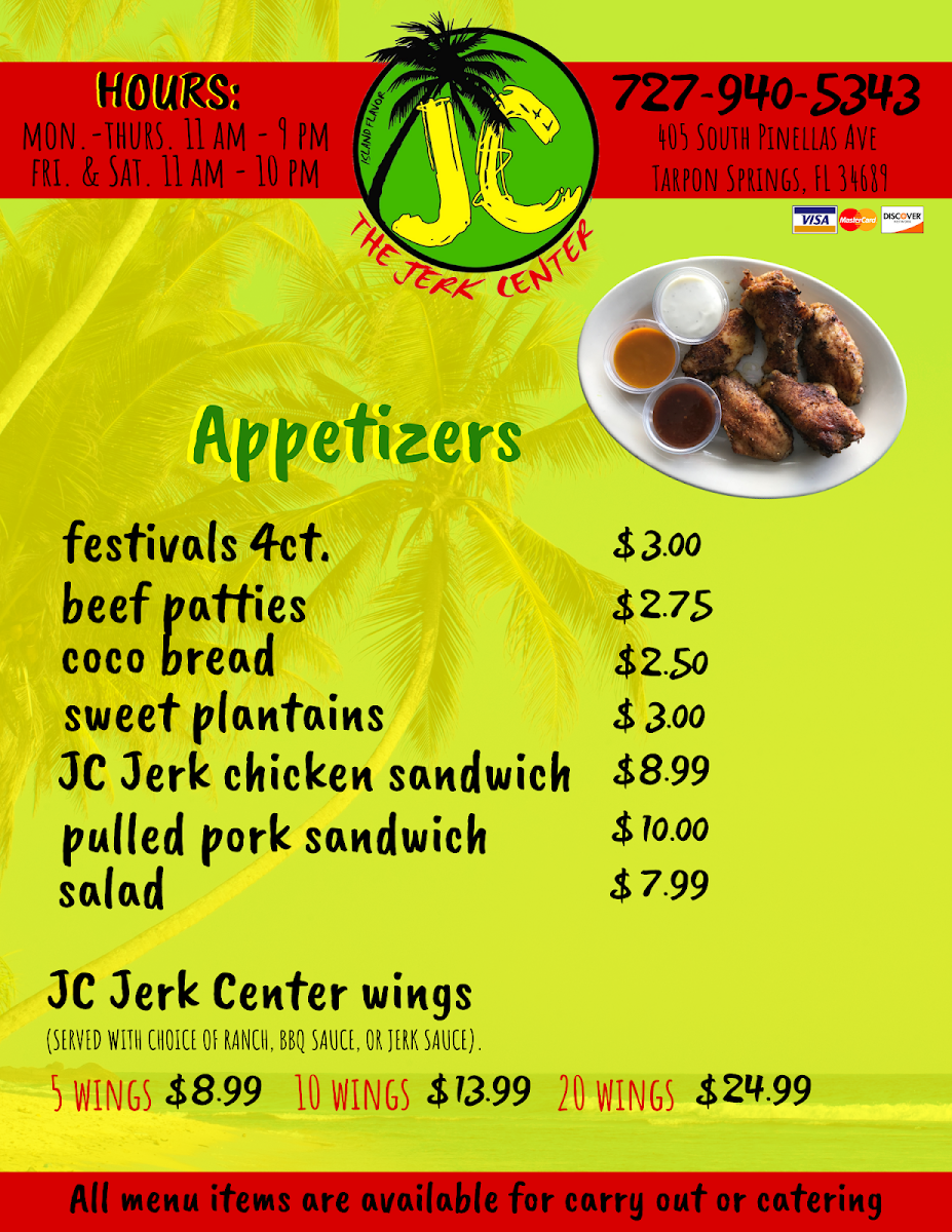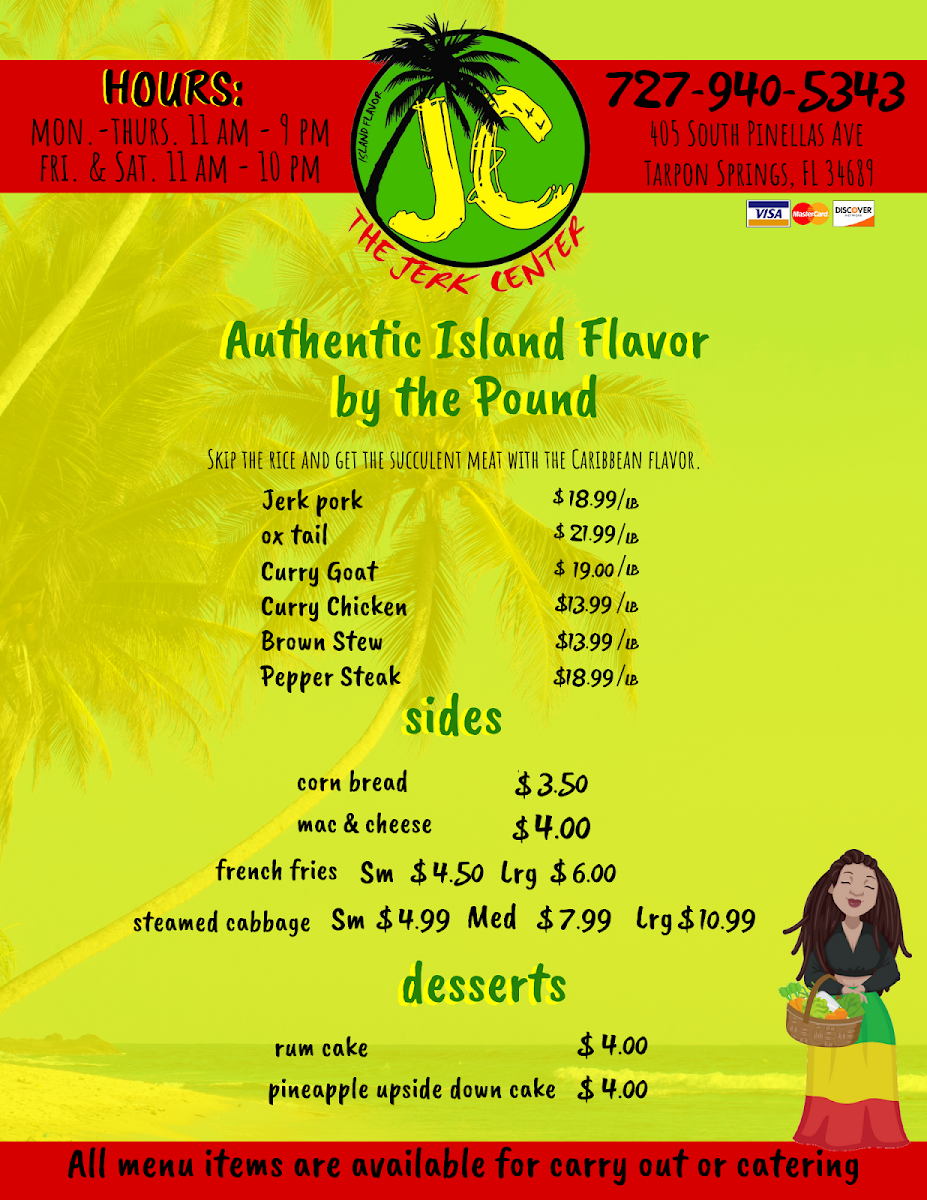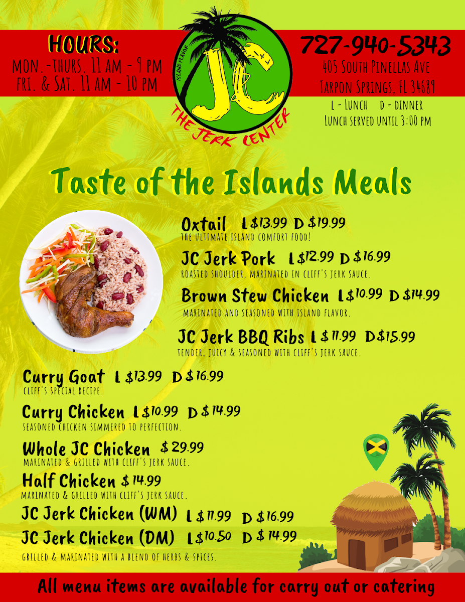Welcome to The Jerk Center, your go-to destination for authentic Caribbean flavors located in Tarpon Springs. The menu is a vibrant celebration of Jamaican culinary traditions, featuring a variety of mouthwatering dishes that promise to transport your taste buds straight to the islands.